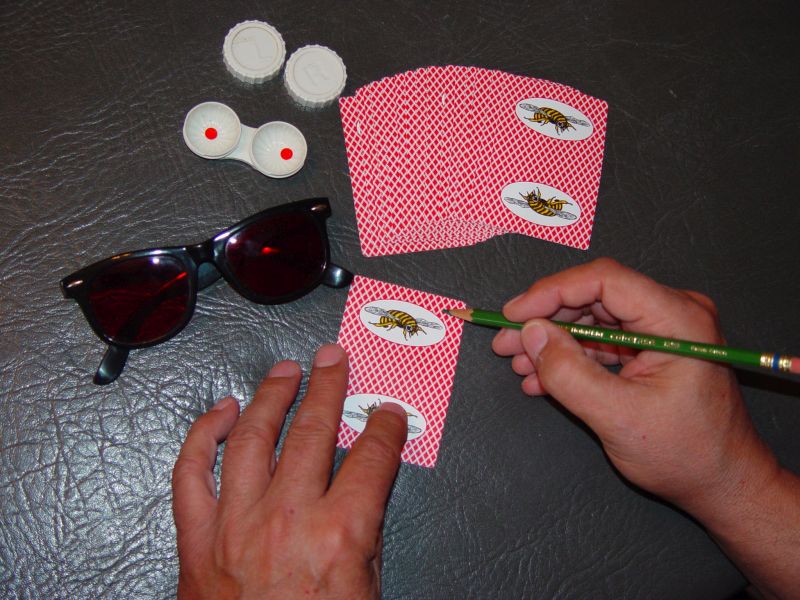 “One suspect wore the contact lenses that could recognize the backs of the marked cards and reveal what hand Feng was holding. The suspect then reportedly used gestures to tip off his teammates, so they knew what cards to play.”