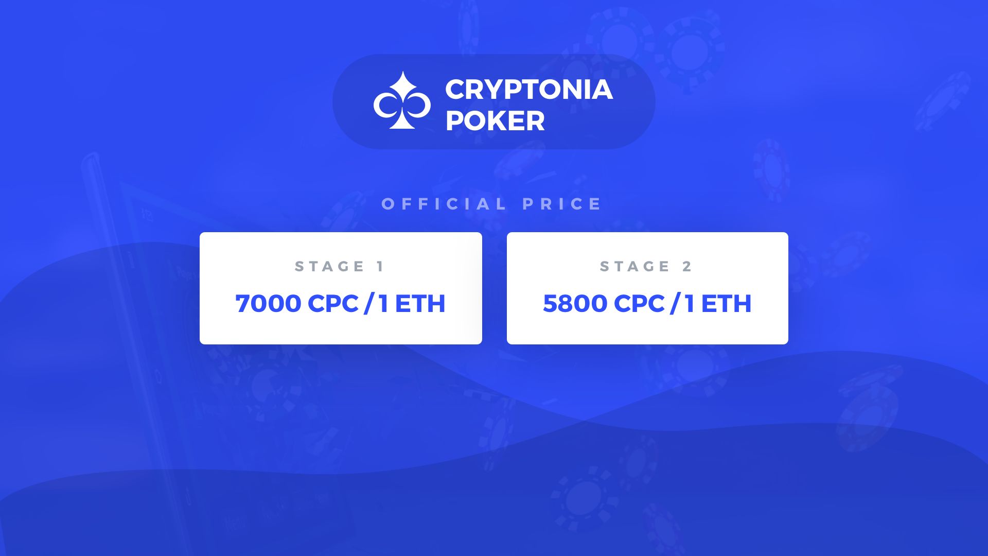 The three stage ICO will initially see the Ethereum-based poker-room offer 1/5th of its total tokens at a price of 1ETH for 11,000 CPC (the in-game currency) allowing them to further their ambitious plans for tournaments round-the-clock, as well as a 35% rakeback scheme.