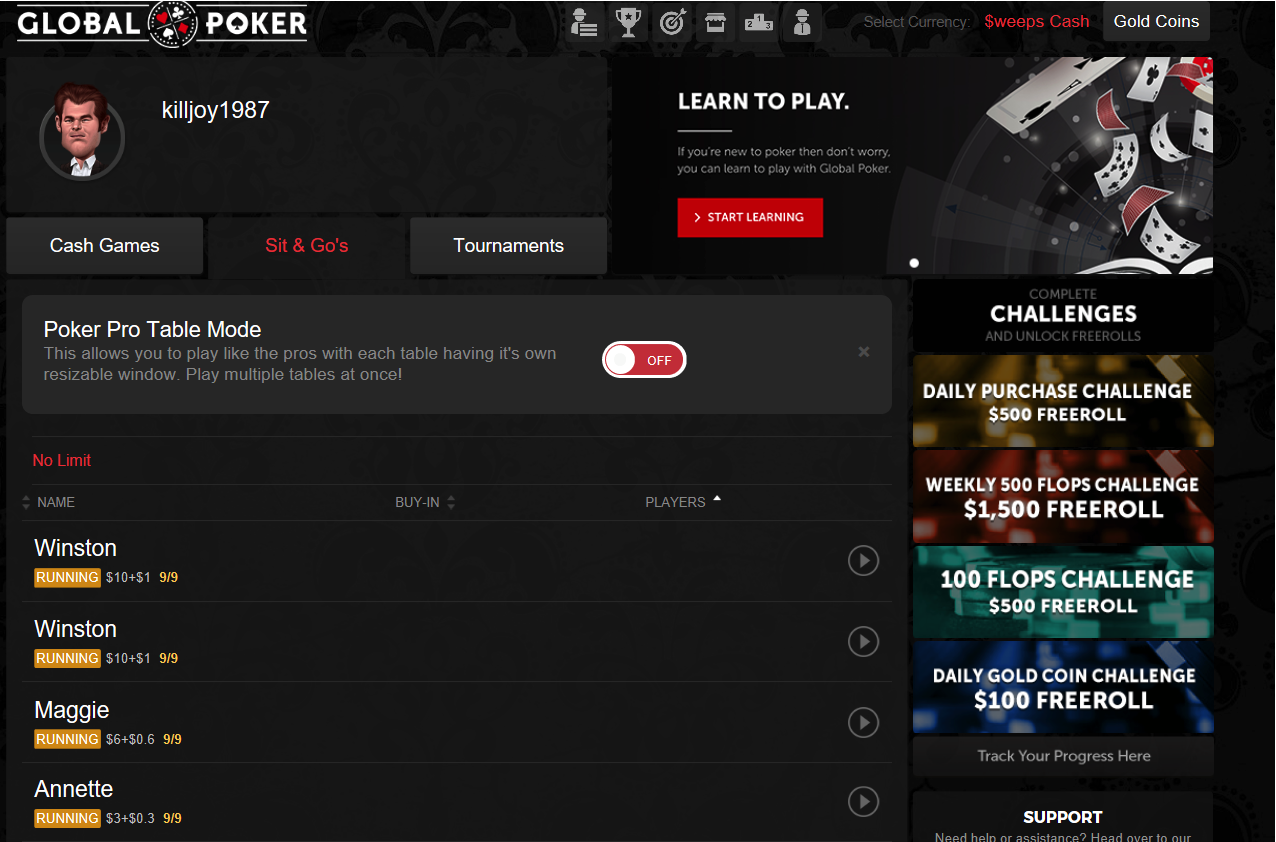 Global Poker’s $weeps Cash (SC$)