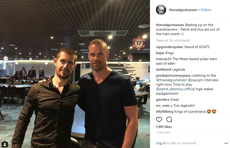 Hansen didn’t seem to put out by his dismissal from the main event, and was in good company, Patrik Antonius also hitting the rails too early for their huge fanclub…