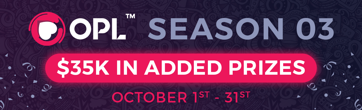 Tournaments will run every single day throughout October and there is up to $1000 to be won in cash in each event, with added value from the site itself seeing an extra £250-500 on the line – as well as the bonus points which will make up the overall OPL leaderboard, the eventual winner taking home a sweet $7000 of the $18,000 prizepool!