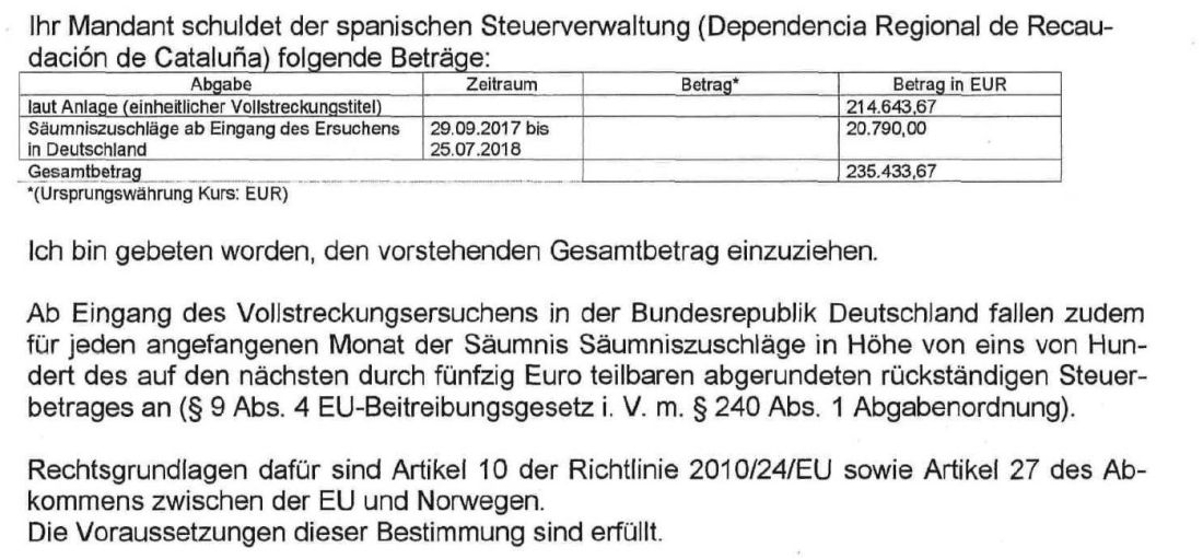 Fast forward several years, however, and “last year a letter from Spain arrived at the German authorities. German finance is to collect from Hossein the Spanish taxes and now it gets really serious”…