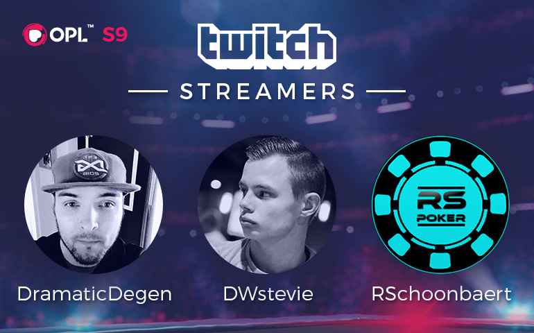 A quartet of experienced and fun-loving TwitchTV poker stars will be weighing in on the nightly action, arlieshaban and the esrtwhile DramaticDegen, dwstevie and rschoonbaert all ready to share the biggest hands and, yes, the most brutal bad beats with the OPL fanclub.