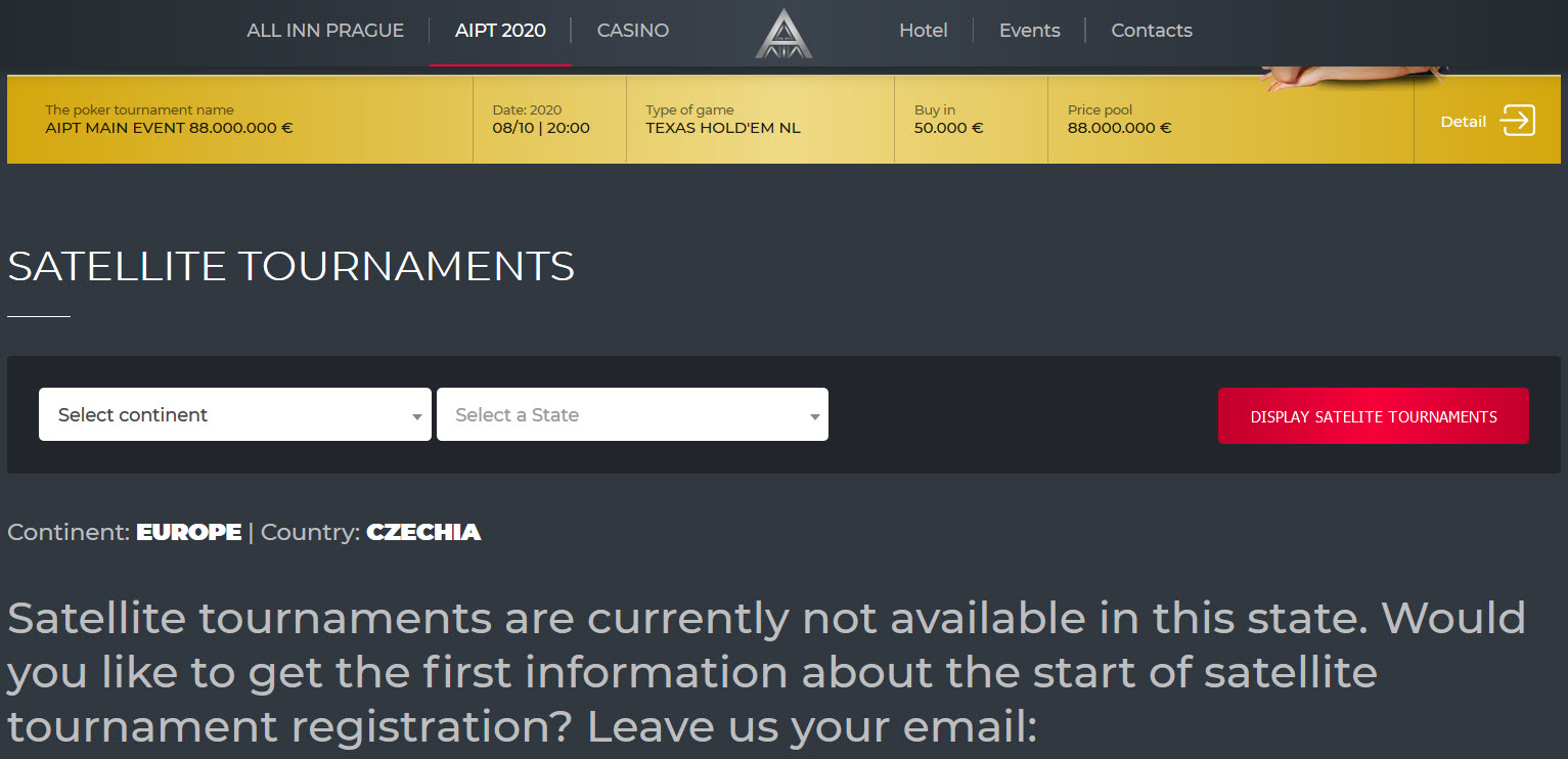 ‘With regard to the global pandemic caused by the coronavirus (COVID-19) and its effects, and further to the resolution of the government of the Czech Republic declaring a state of emergency and closure of borders, a decision has been made to postpone the AIPT 2020 Main Event as well as all upcoming satellite tournaments and qualifications.’