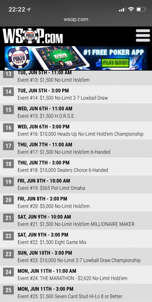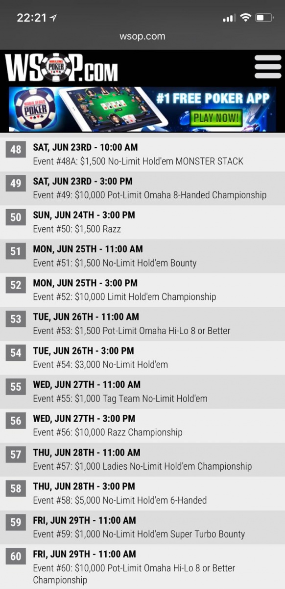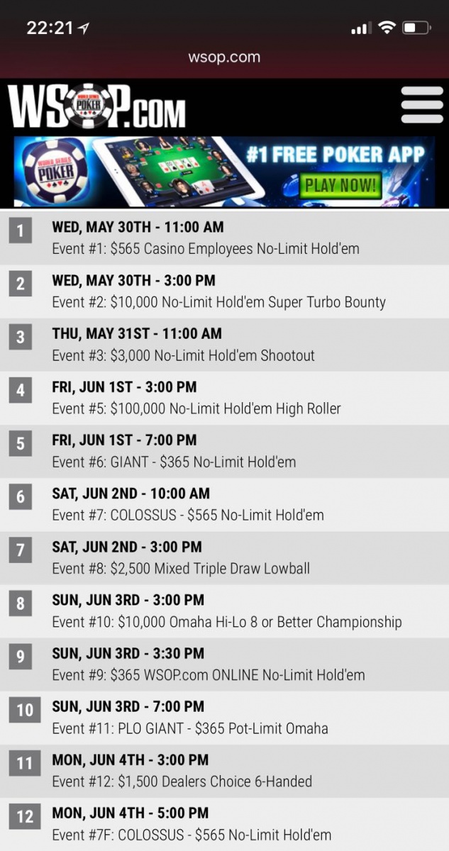 Fans of the WSOP got a sneak preview of what might be in store for them next summer when a draft schedule of the Vegas summer-long poker festival was apparently released by accident, screenshots of the timetable of events shared on the forum of the French poker site ClubPoker.com.